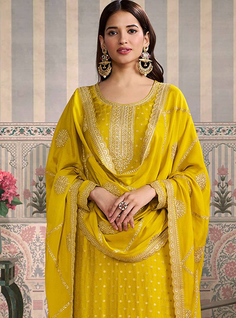 | Product Name | Yellow Color Viscose Chiniya Silk Fabric Ethnic Embroidered Salwar Kameez | |