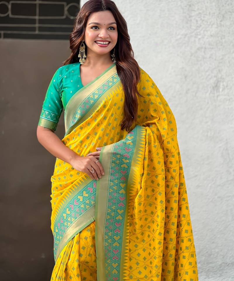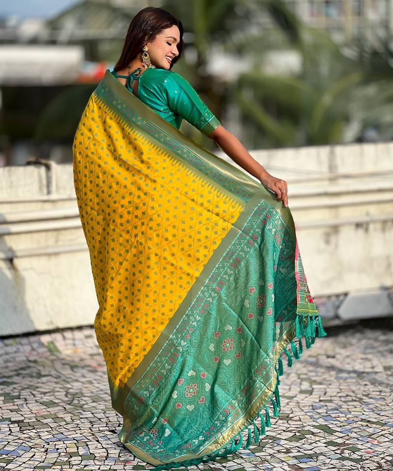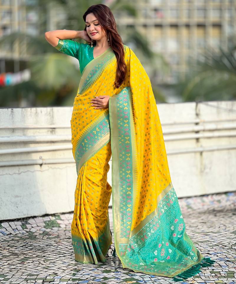 | Product Name | Yellow Color Woven Meenakari Ikkat Designer Patola Silk Saree | |