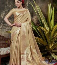 Yellow colour maheshwari tissue silk fabric traditioanl saree with woven work