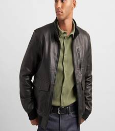 | Product Name | Genuine Soft Leather Bomber Rib Waist Lambskin Men's Leather Jacket Black Motor Jacket | |