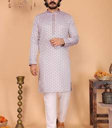 Men’s heavy jacquard silk purple kurta with cotton pyjama