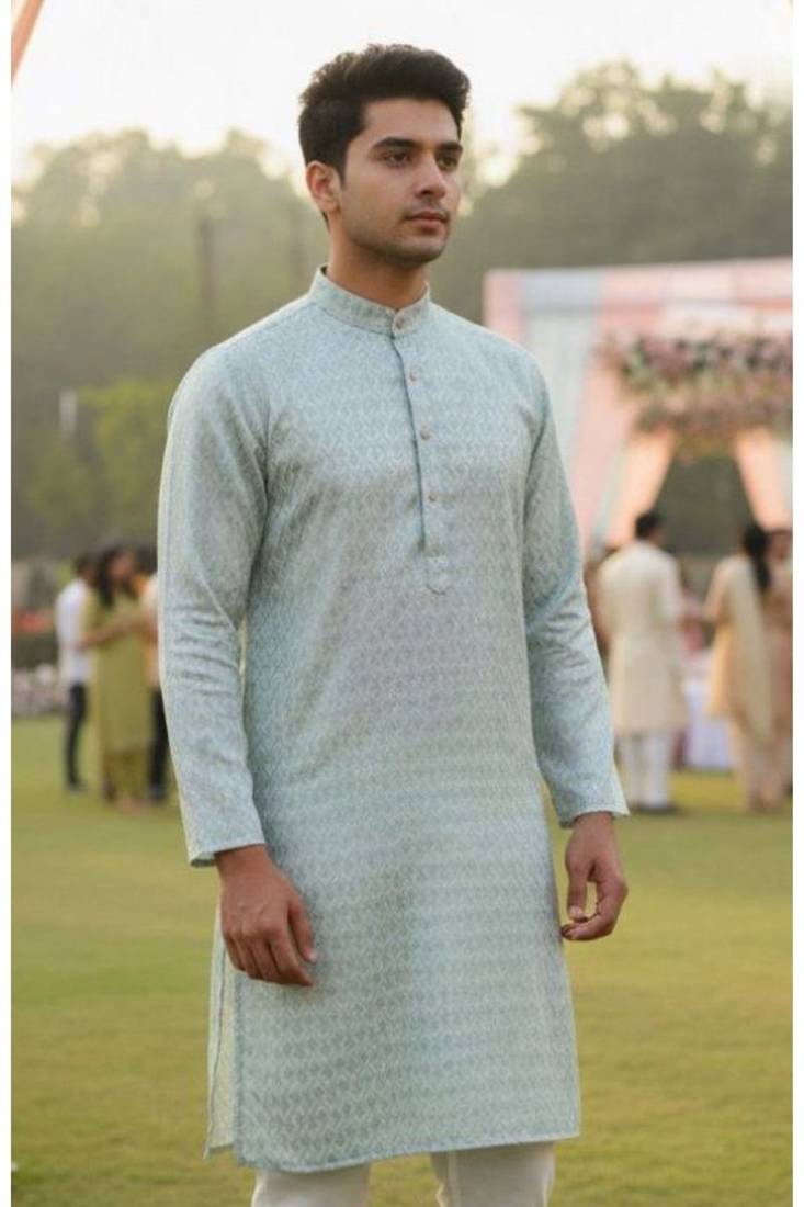 | Product Name | Men’s Heavy Silk Mint Kurta With All Over Work & Cotton Pyjama | |
