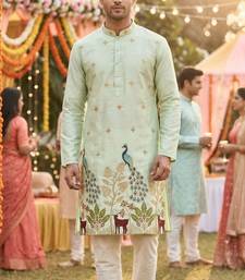 | Product Name | Men S Pure Silk Pista Green Kurta With Thread & Sequins Work And Cotton Pyjama | |