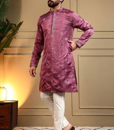 | Product Description | Rich Purple Royal Silk Kurta Adorned With Embroidery And Sequin Work, Complemented By Breathable Cotton Pyjama For Grand Celebrations |