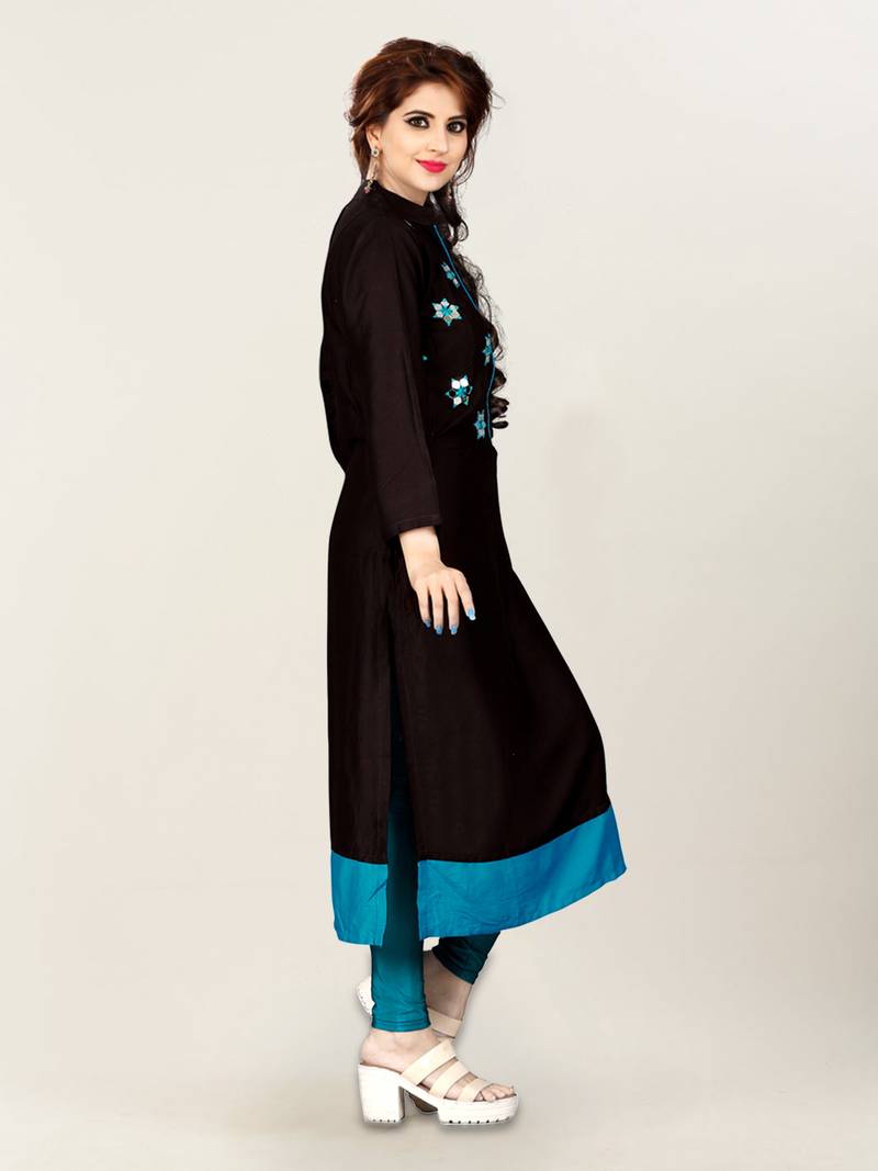 | Product Description | Kvsfab Brown & Blue Color Mirror Work Rayon Straight Kurta |