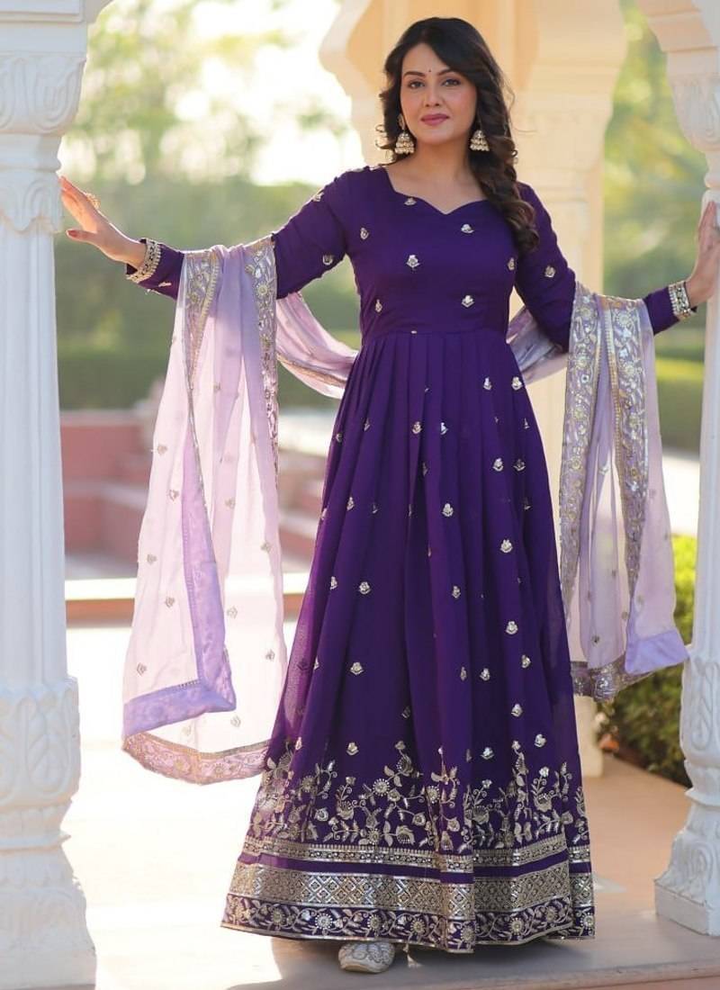 Product Name | Navy Blue Georgette Embroidered Zari Sequin Gown With Dupatta | |