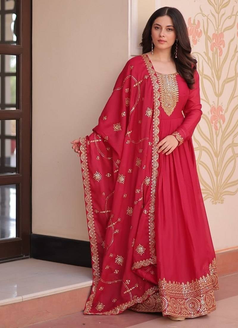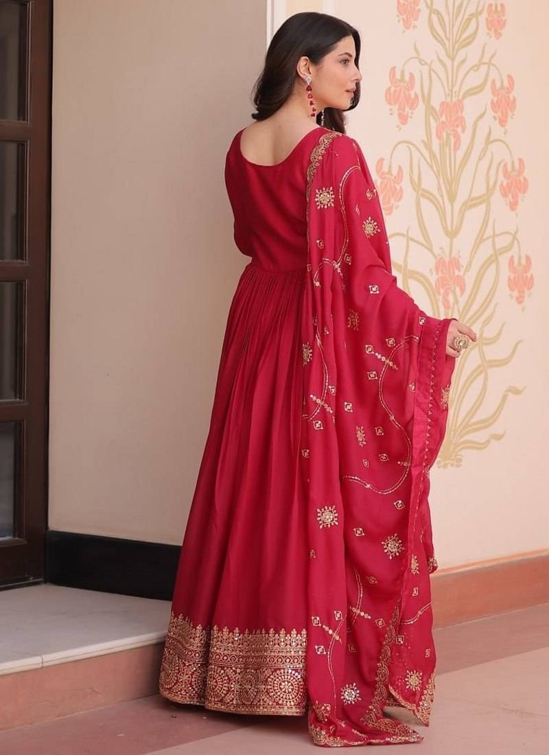 Product Description | Elegant Pink Georgette Anarkali Suit Featuring Sequin And Zari Embroidery, Paired With A Matching Dupatta—Perfect For Festive And Special Occasions. |