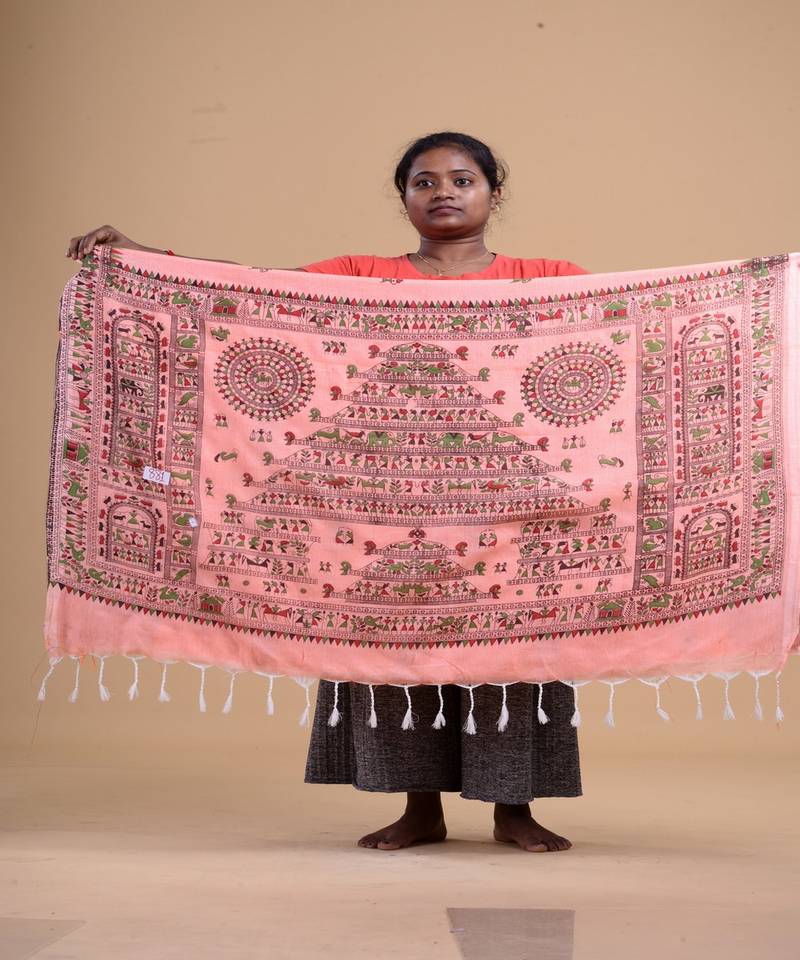 | Product Name | Peach & Multi Handloom Hand Woven Tant Jamdani Saree | |