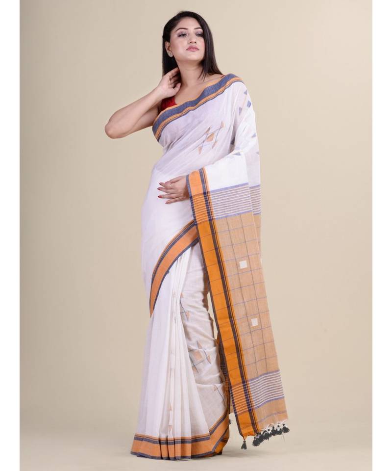 | Product Name | White & Brown Pure Cotton Silk Hand Woven Jamdani Handloom Saree | |