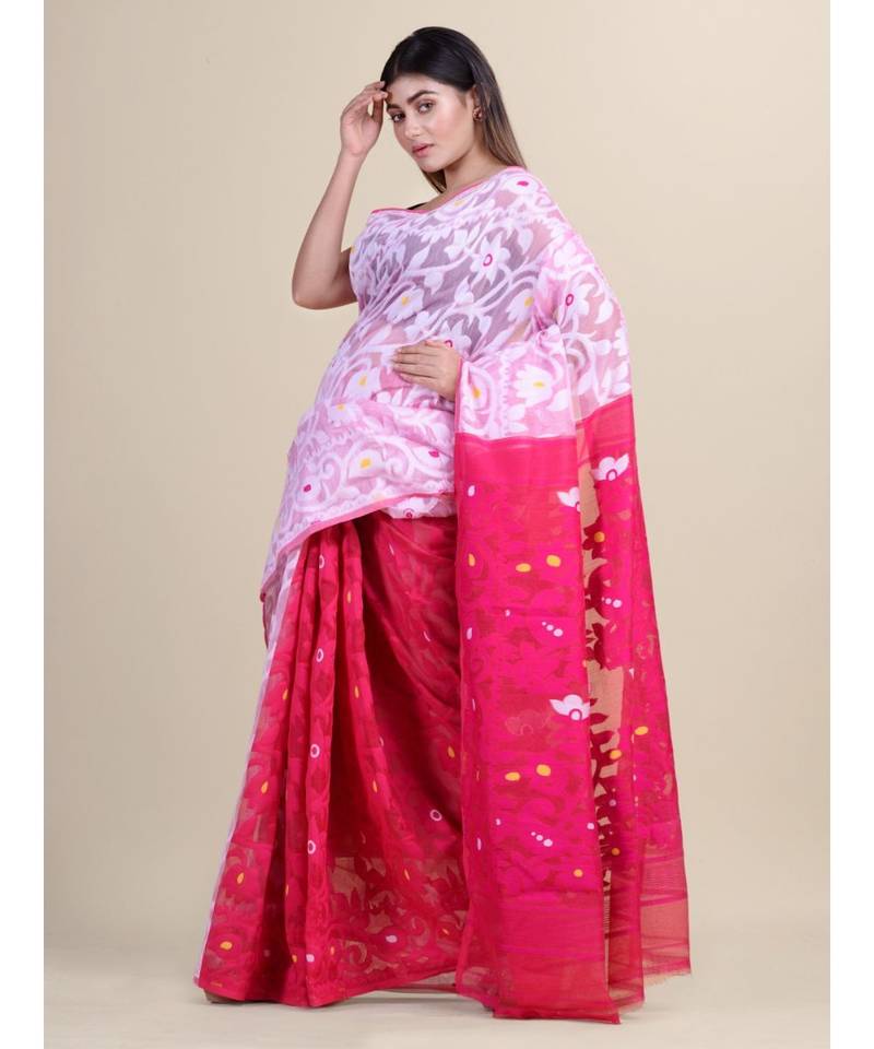 | Product Name | White & Deep Pink Cotton Silk Hand Woven Jamdani Handloom Saree | |