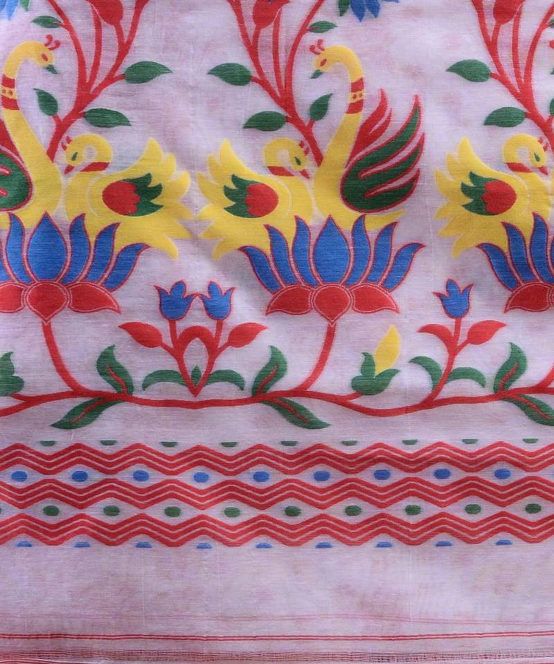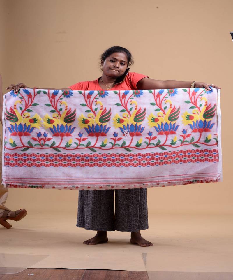 | Product Name | White & Red Dhakai Jamdani Hand Woven Cotton Silk Handloom Saree. | |