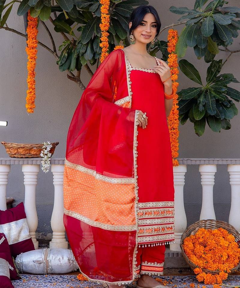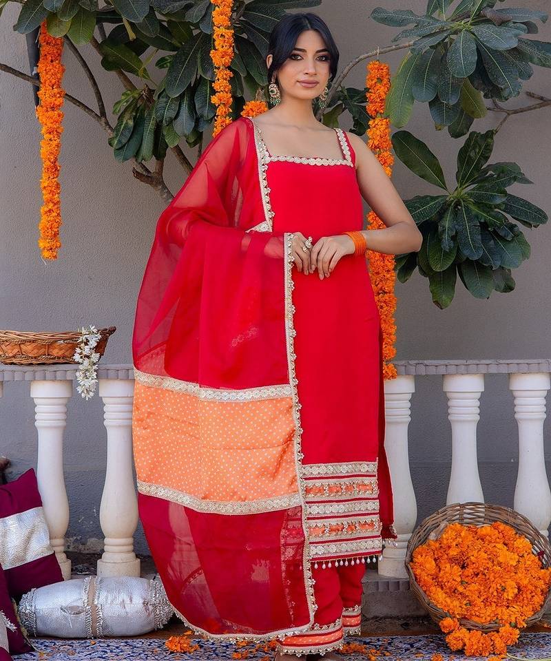 | Product Name | Red Pure Silk Plain Top Pant With Dupatta | |