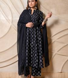 Black printed anarkali kurta with pants & dupatta set of 3 stitched
