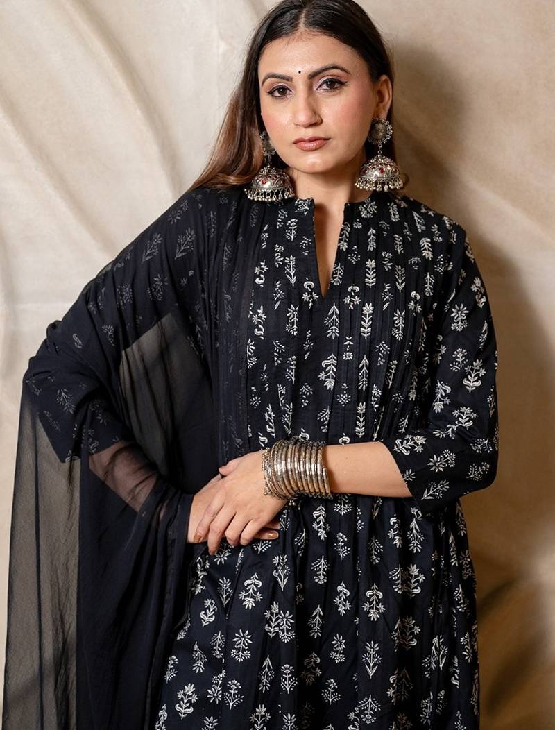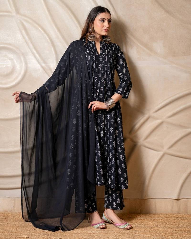 | Product Name | Black Printed Anarkali Kurta With Pants & Dupatta Set Of 3 | |
