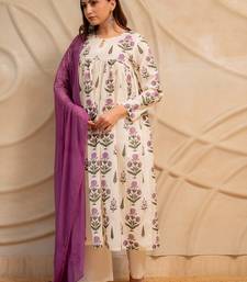 | Product Name | Ivory Floral Printed Straight Kurta With Pants & Purple Dupatta Set Of 3 | |