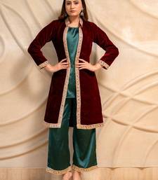 | Product Name | Maroon Velvet Jacket With Green Kurta & Palazzo Set Of 3 | |