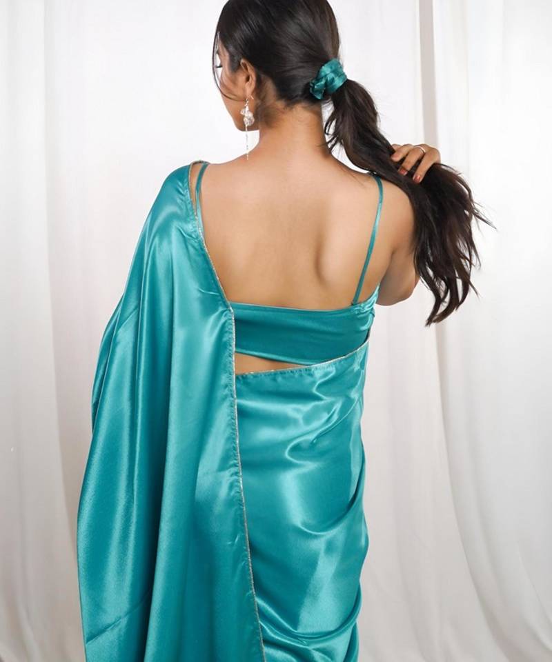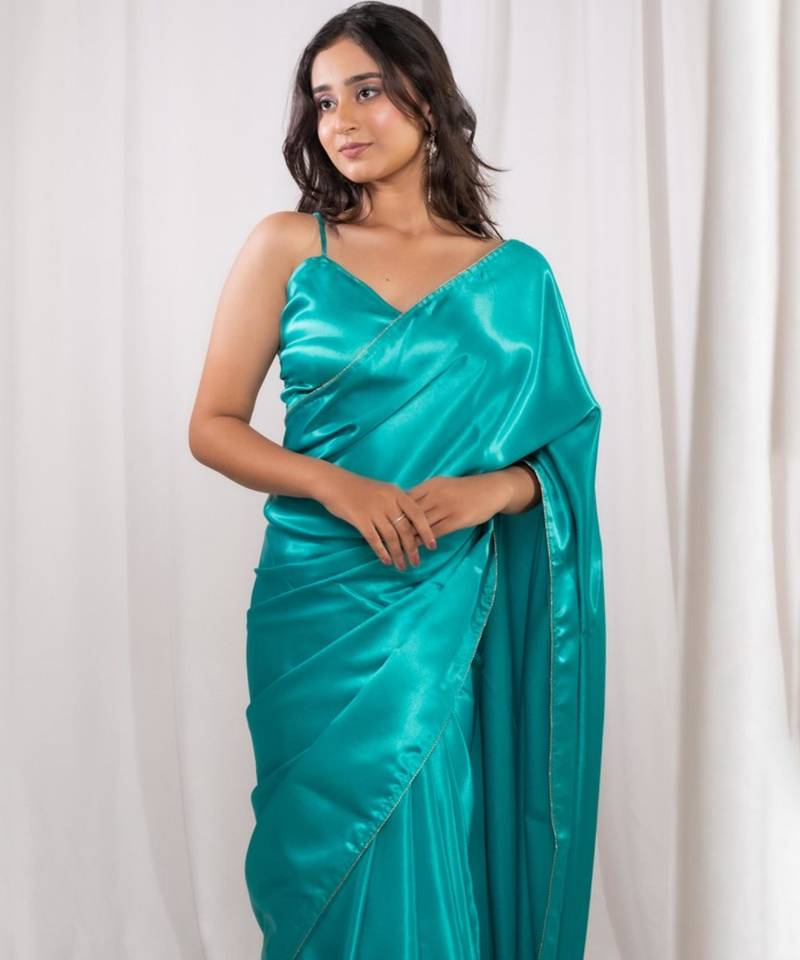 | Product Name | Aqua Green Cutdana Border Satin Embroidered Saree With Stitched Blouse | |