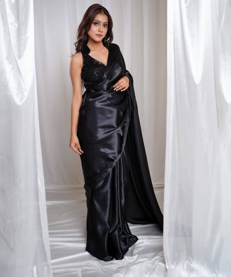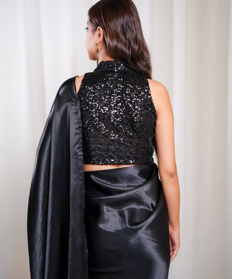 | Product Name | Moonlit Muse Black Cutdana Border Satin Embroidered Saree With Stitched Sequin Blouse | |