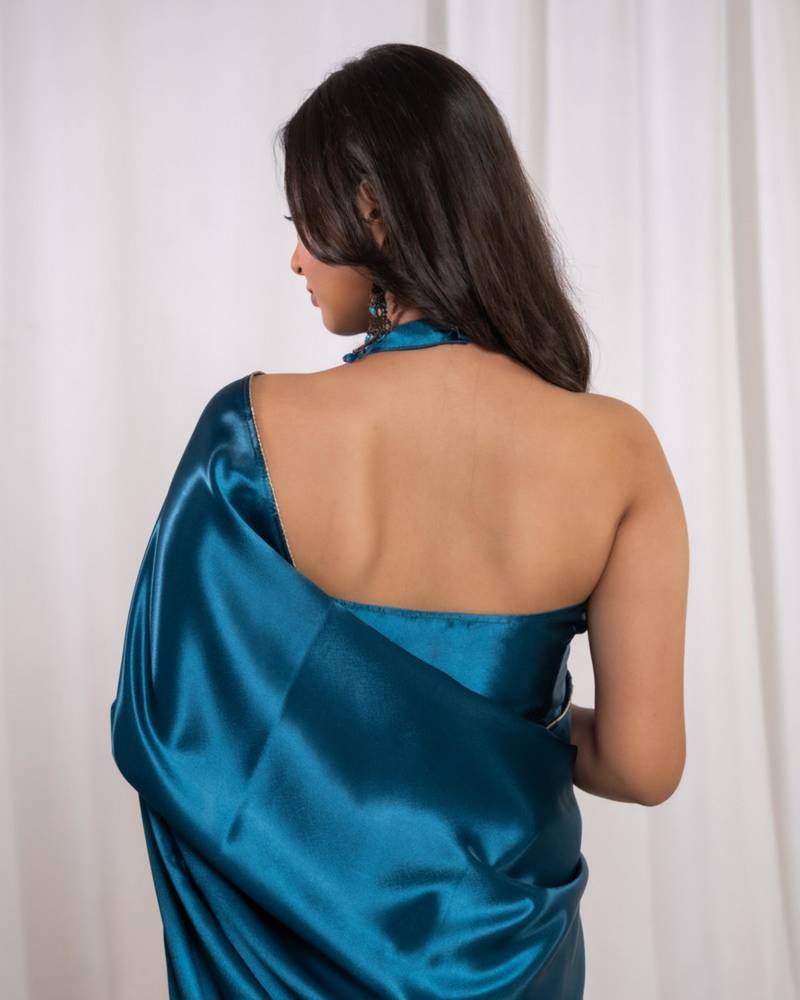 Saree : Color- Teal / Fabric- Satin