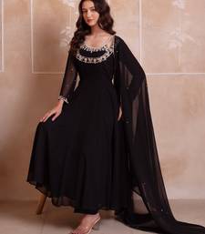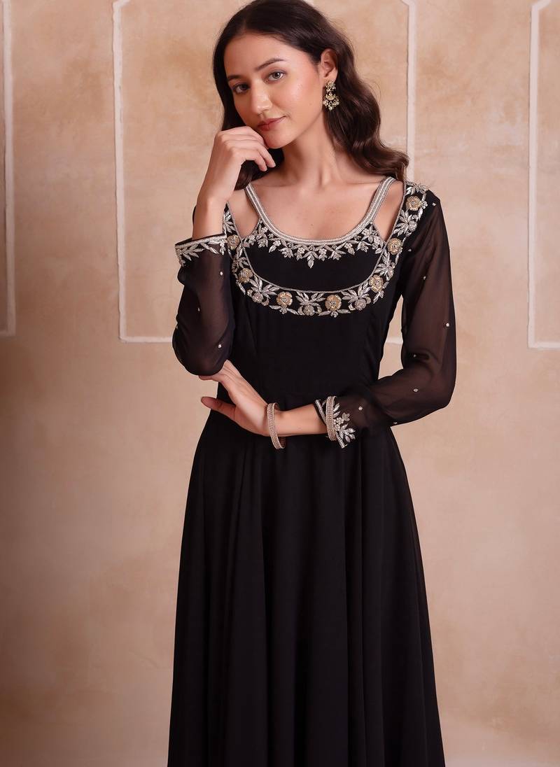 Black georgette handwork anarkali suit set stitched