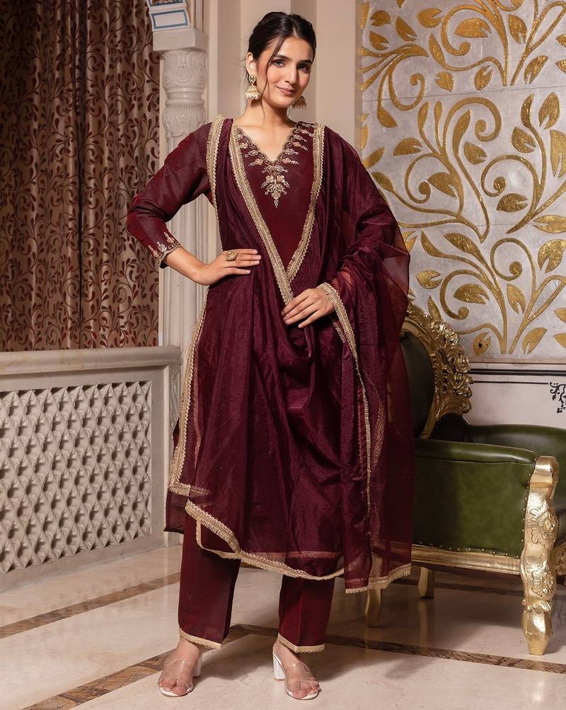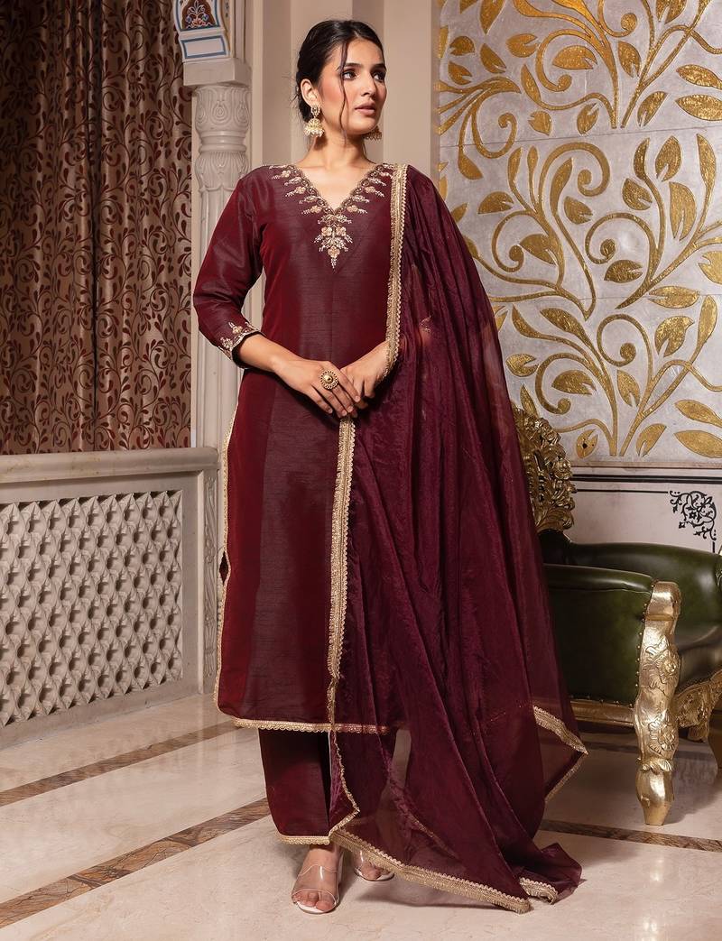 | Product Name | Dark Maroon Handwork Pakistani Silk Kurta Set | |