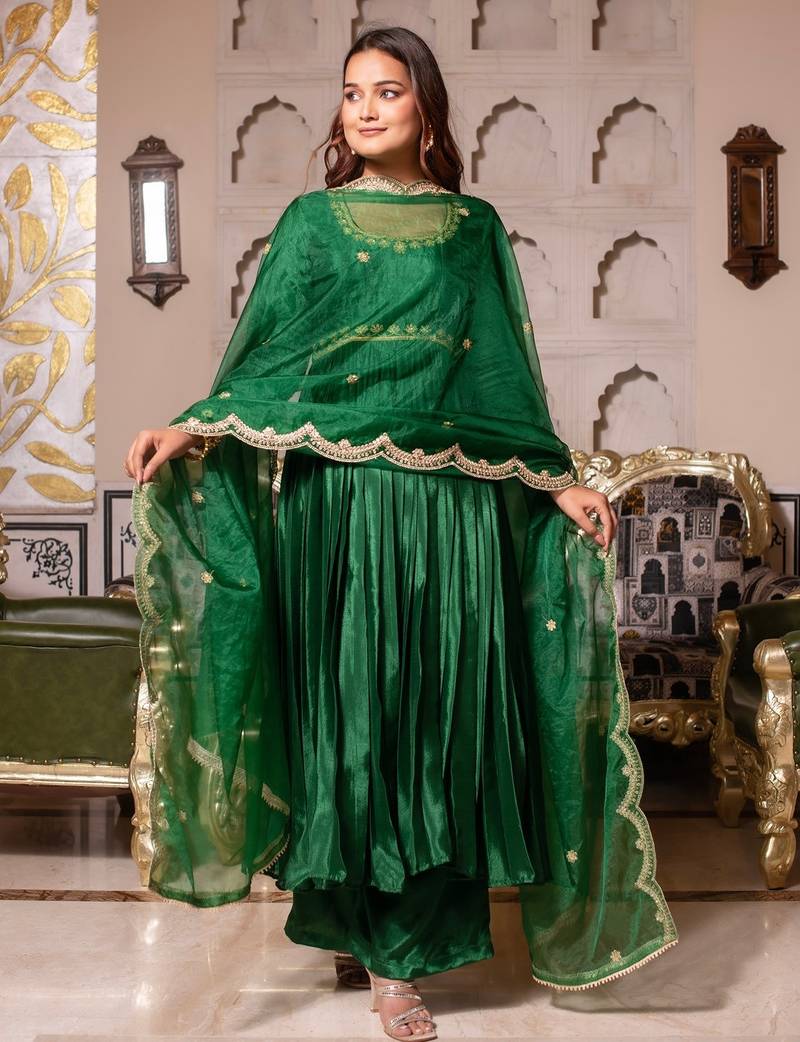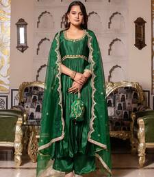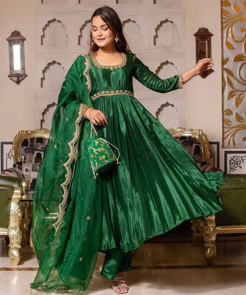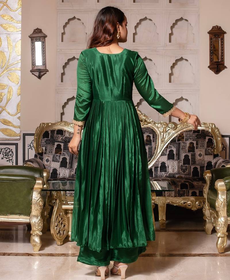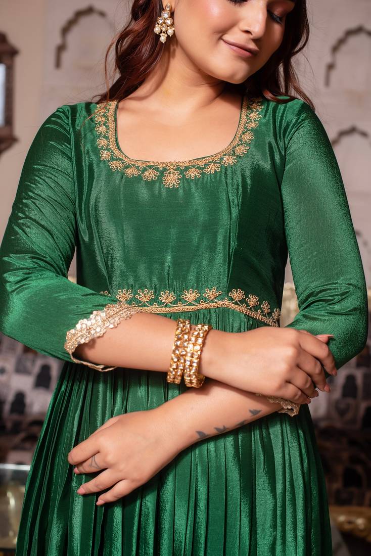 Product Name Forest Green Chinon Handwork Anarkali Suit Set