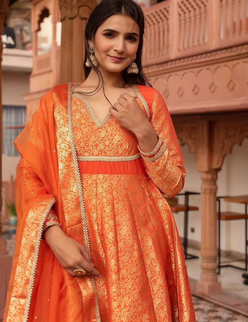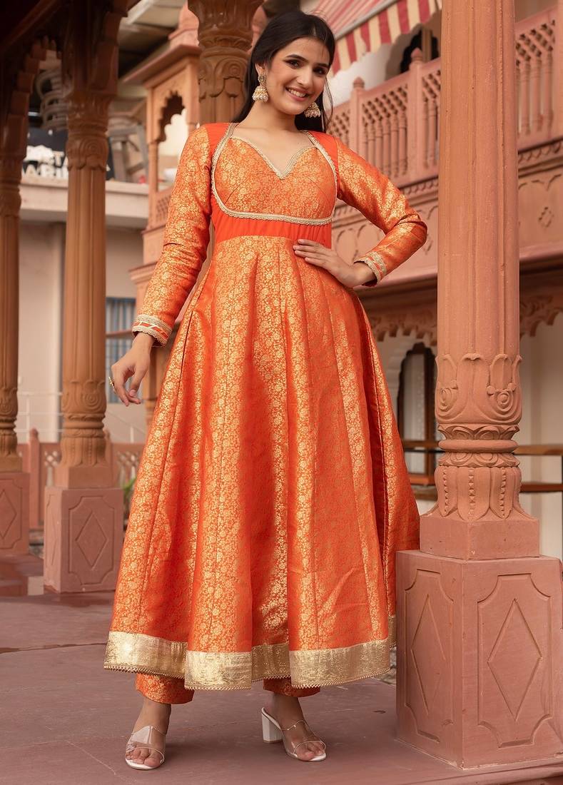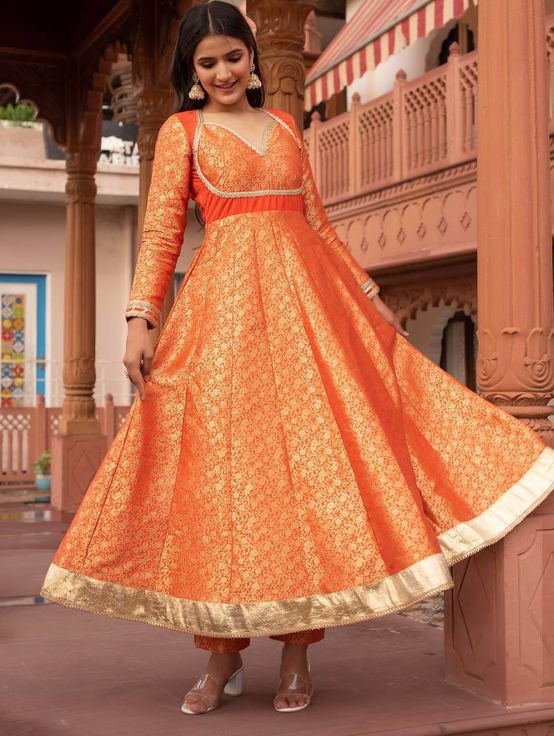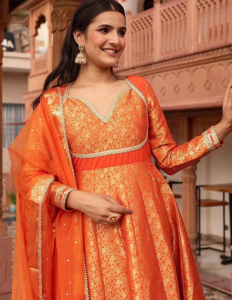 Product Name Orange Jacquard Gotapatti Anarkali Suit Set