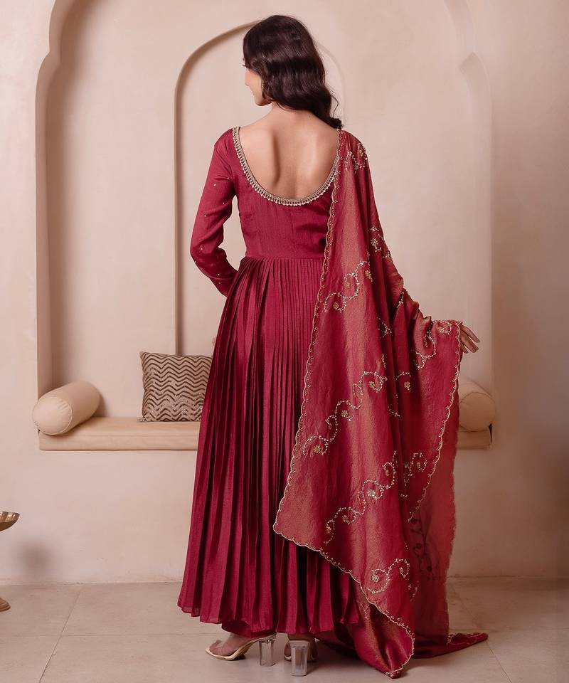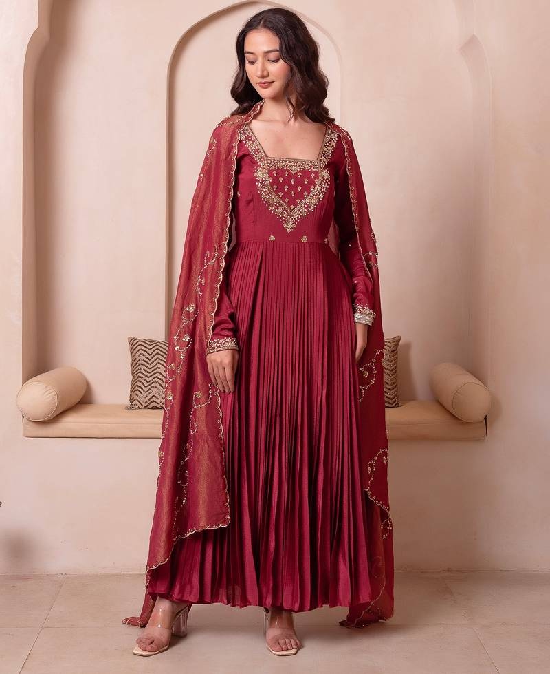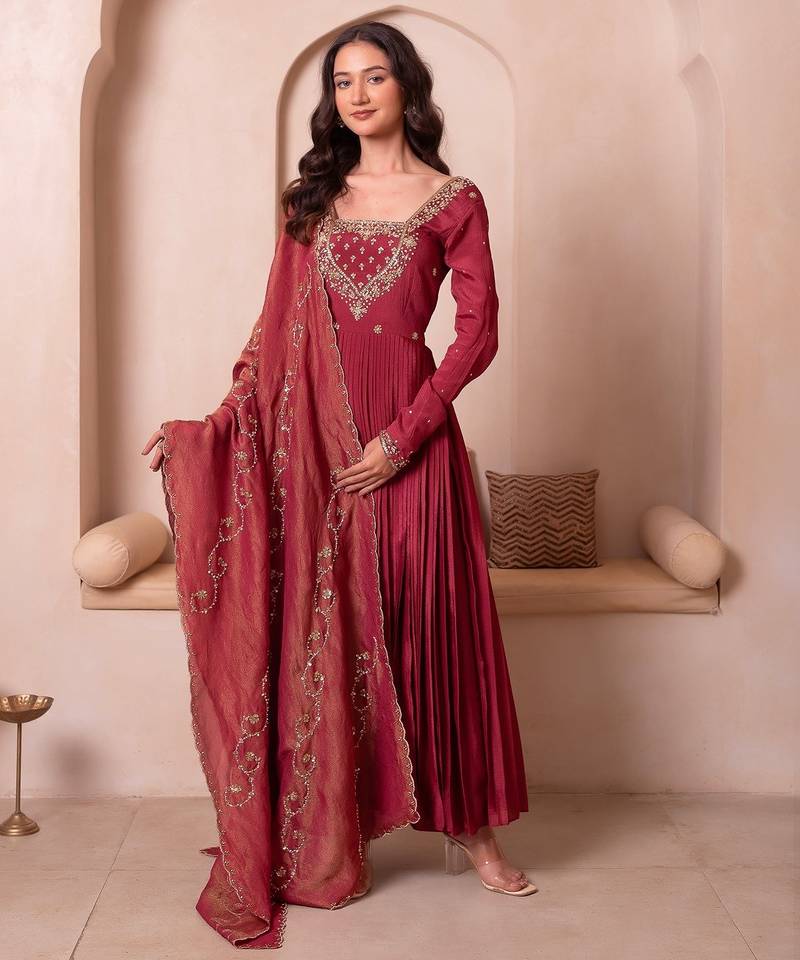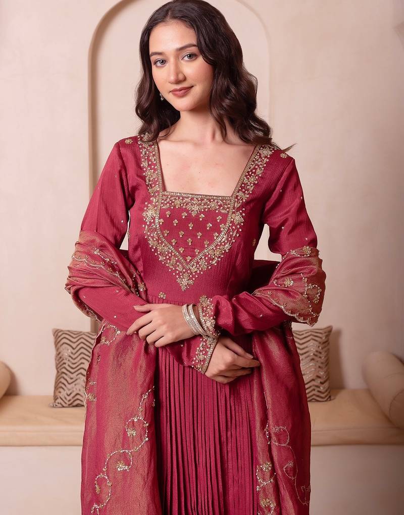 | Product Name | Rosegold Chinon Trousseau Handwork Anarkali Suit Set | |