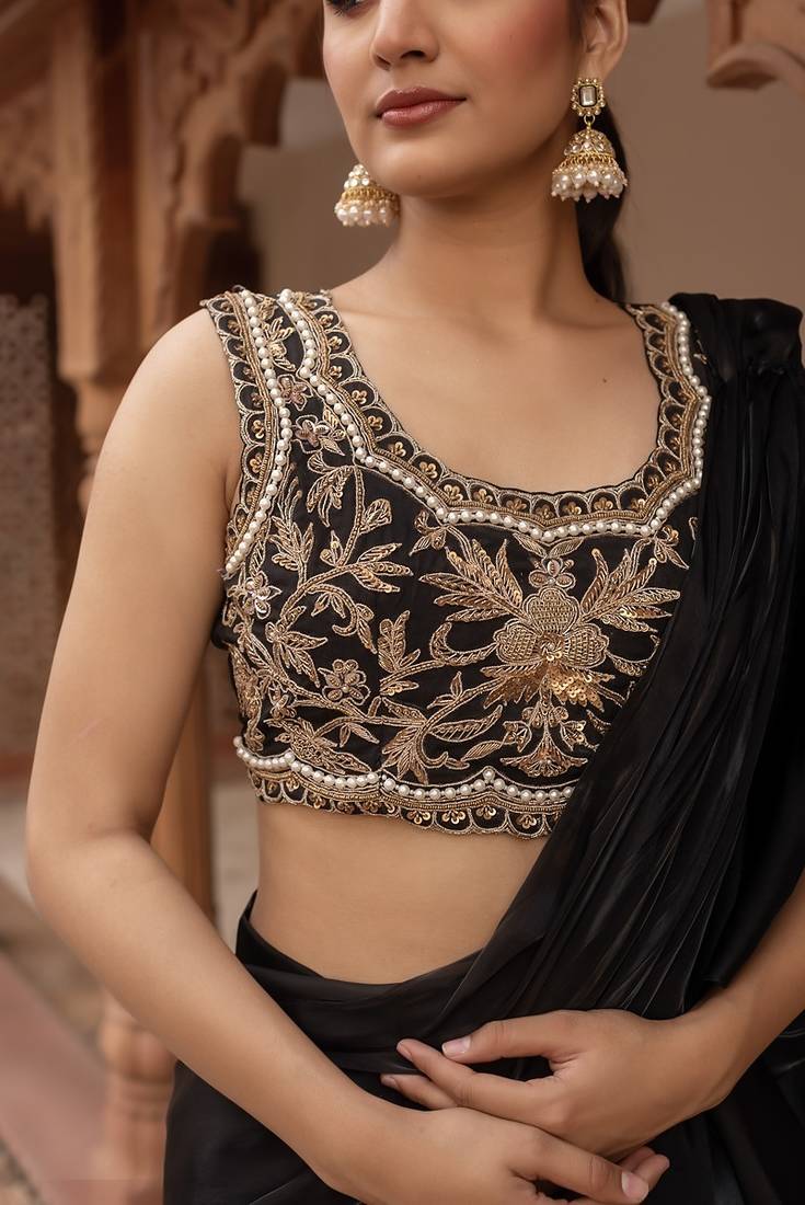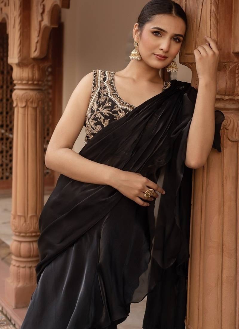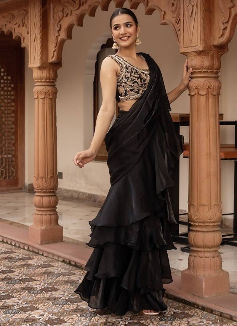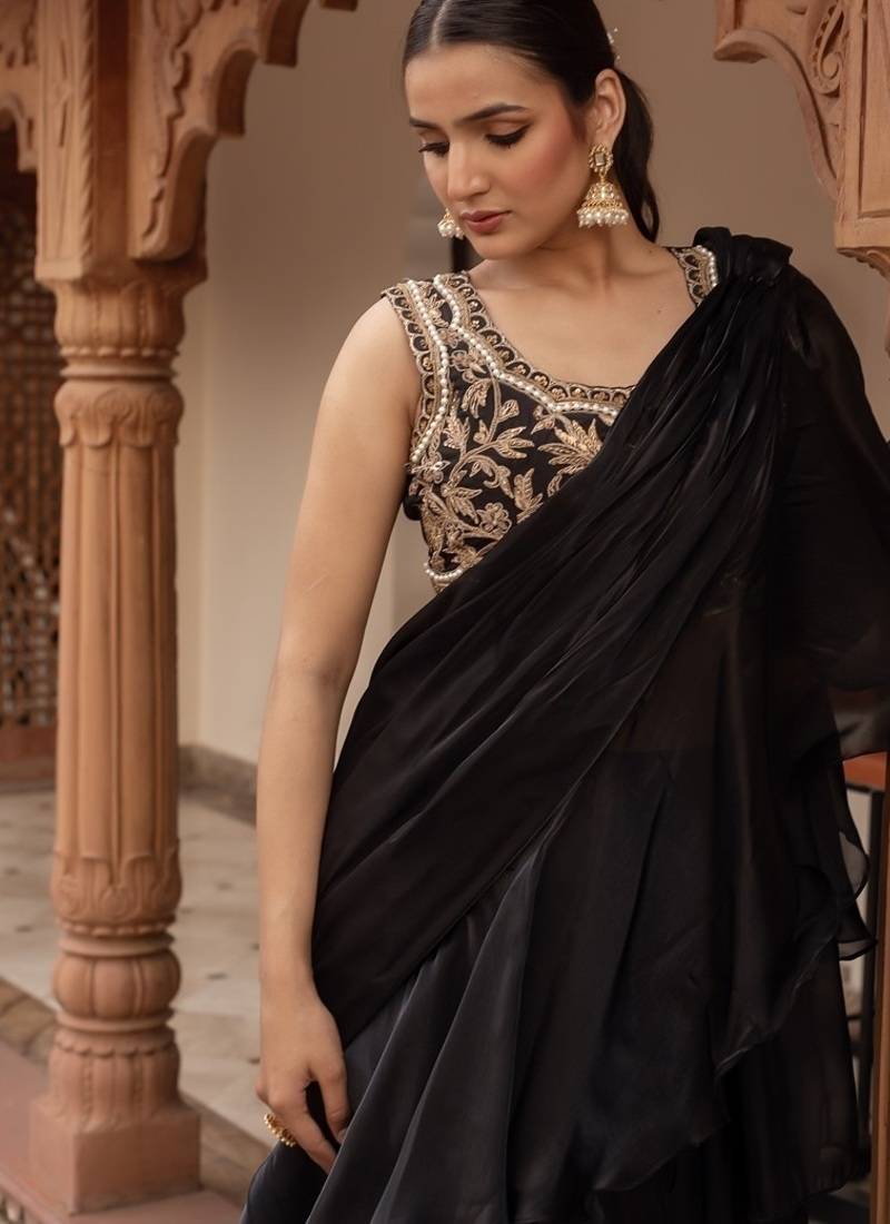| Product Name | Black Handwork Organza Pre Draped Saree With Blouse | |
