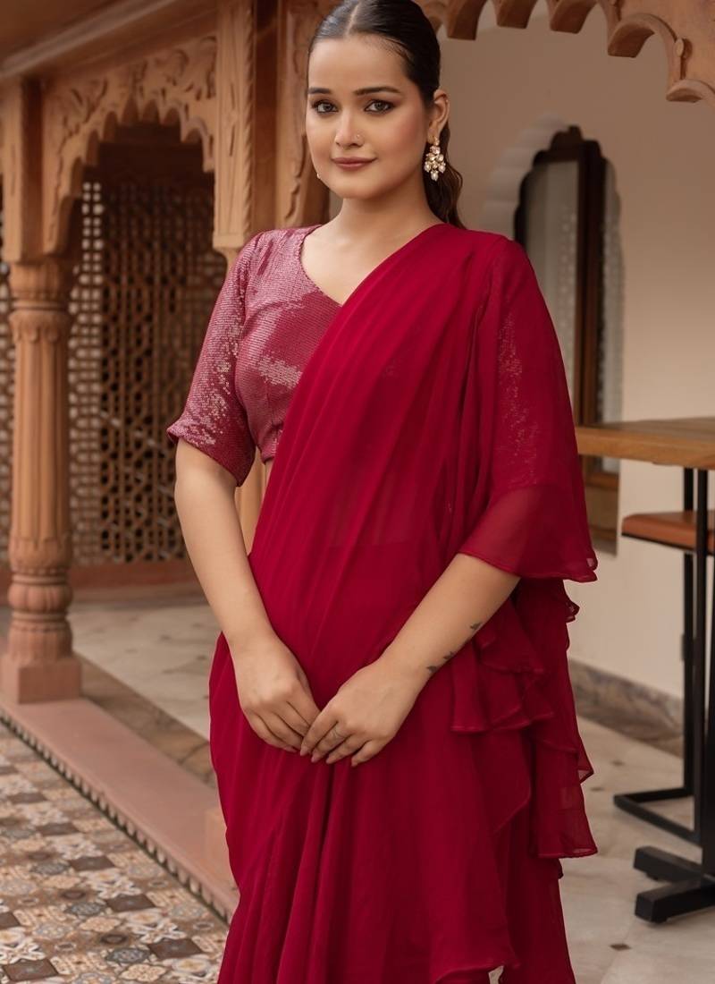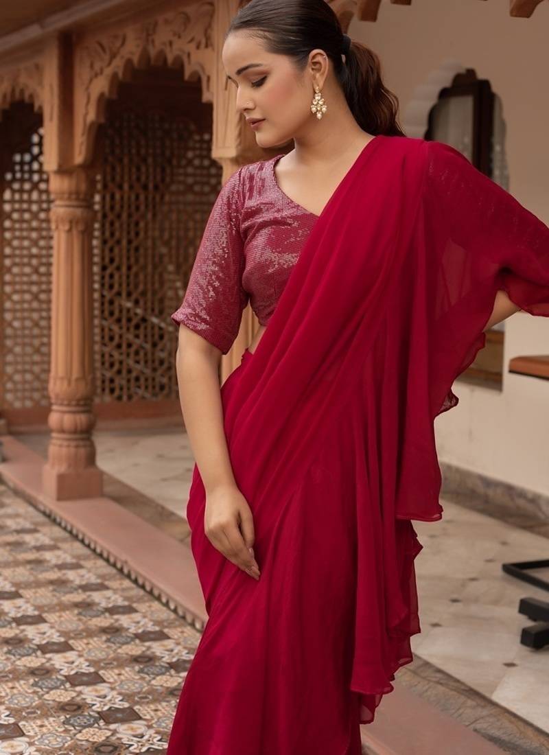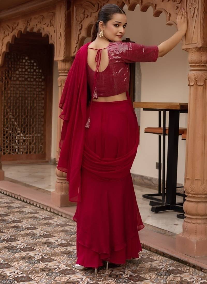 | Product Name | Rani Sequined Georgette Organza Pre Draped Saree With Blouse | |