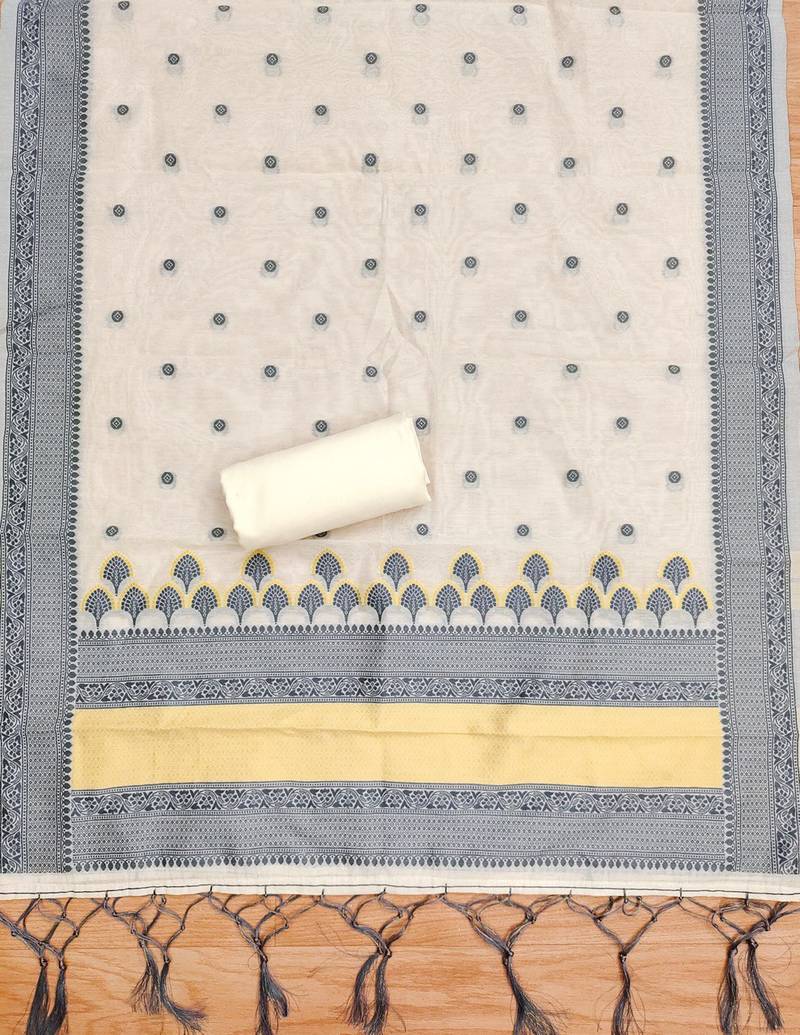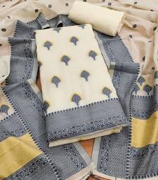 Grey resham weaving chanderi cotton 3-piece dress material unstitched