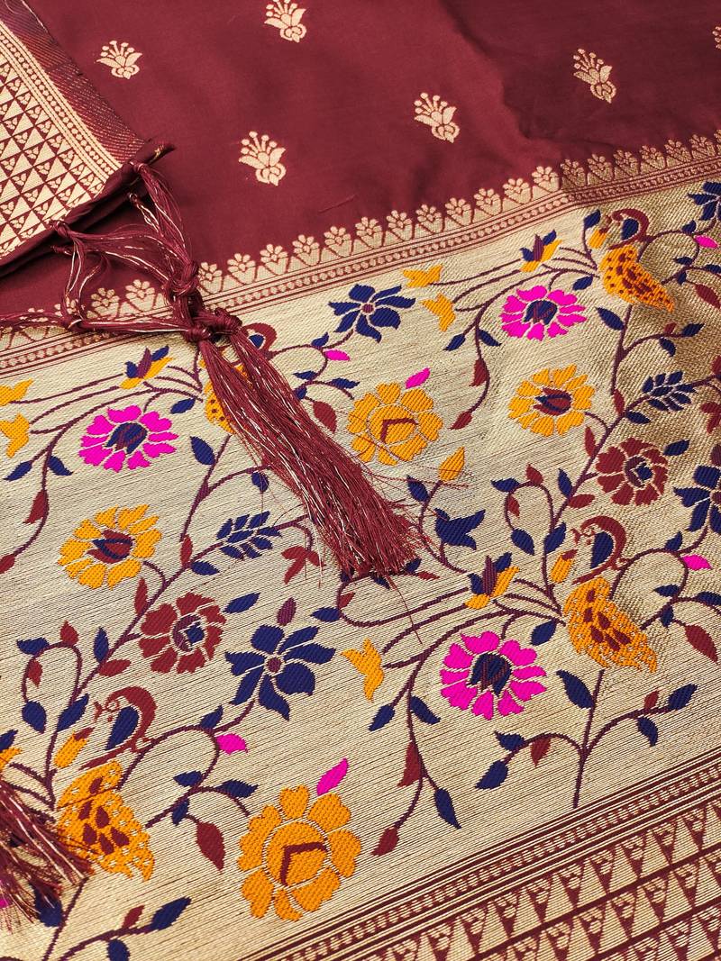 | Product Name | Maroon Soft Banarasi Silk Pure Zari Woven Design Dress Material | |