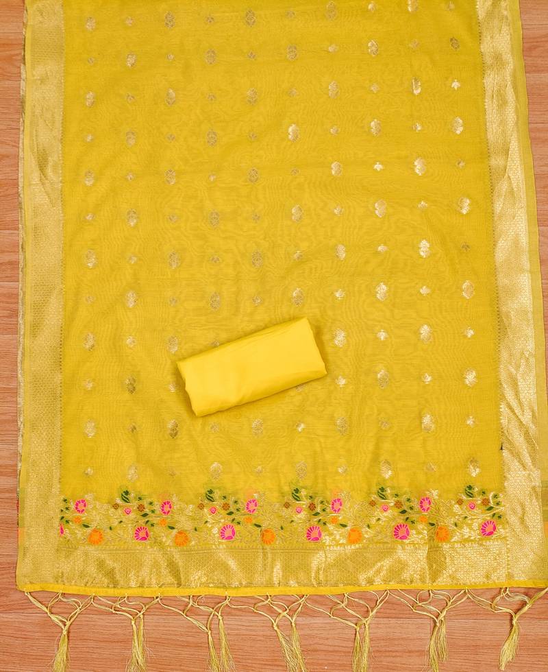 | • | Dupatta | : | Color- Yellow / Fabric- Banarasi Silk |