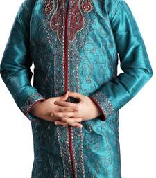 Product Name Turquoise Embroidered Art Dupion Silk Boys Sherwani