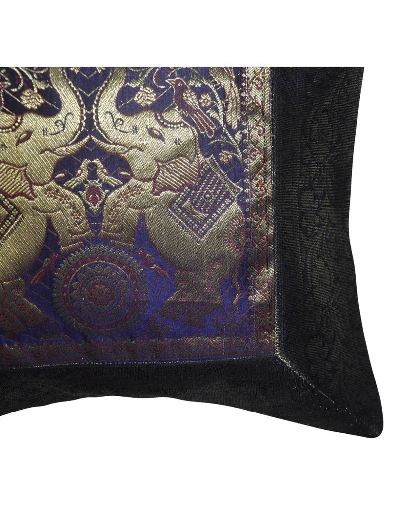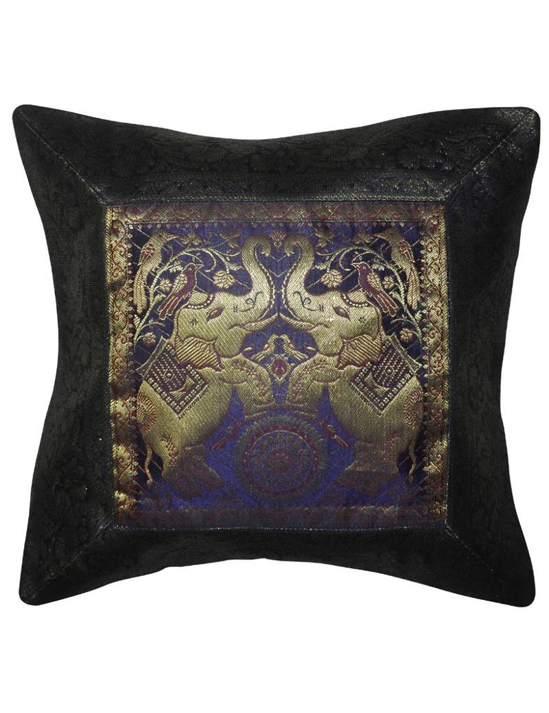 Elephant work design silk indian cushion cover 16 x 16 inches