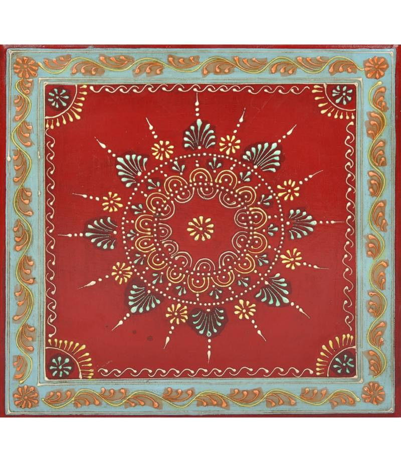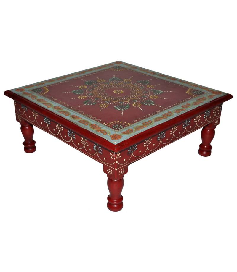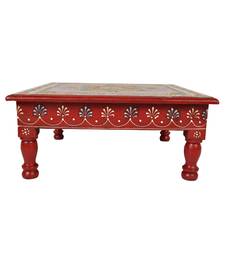 Lal haveli hand painted carved work wooden puja chowki table red color 13 x 13 x 5.5 inches
