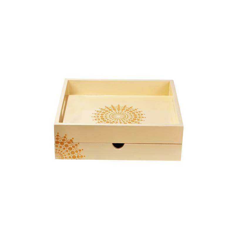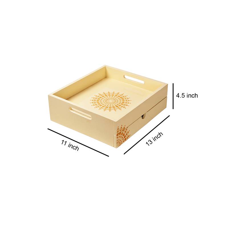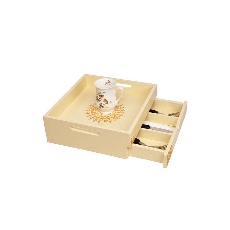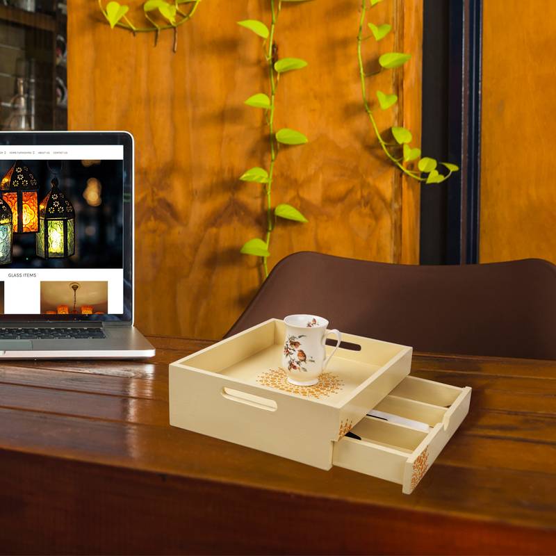 | Product Description | We Again Bring Handmade Hand Painted Wooden Serving Tray With Drawer. The Drawer Provides Plenty Of Room For Spoons, Fork Or Napkins. Can Be Used As A Tea Coffee Tray, Breakfast Tray, Party Décor, Home, Office, Restaurant, Hotel Use. You Will Find Many Uses For This Tray In Your Own Home. From Being A Great Decor Piece, Entertaining Guests, To Serving Your Sweetie Breakfast In Bed. The Wooden Tray Is Heat Resistant So That You Can Serve Hot Tea & Other Hot Snacks Without Any Trouble At All |