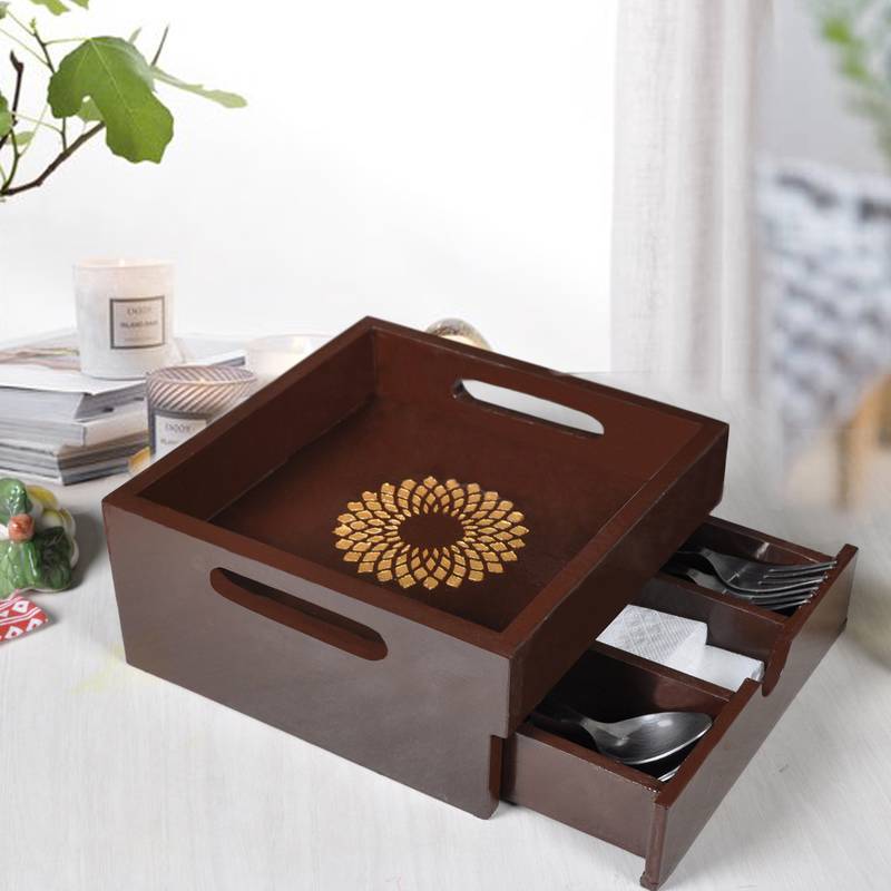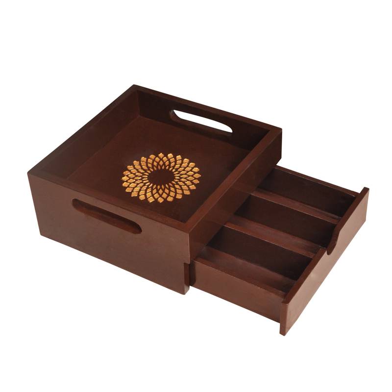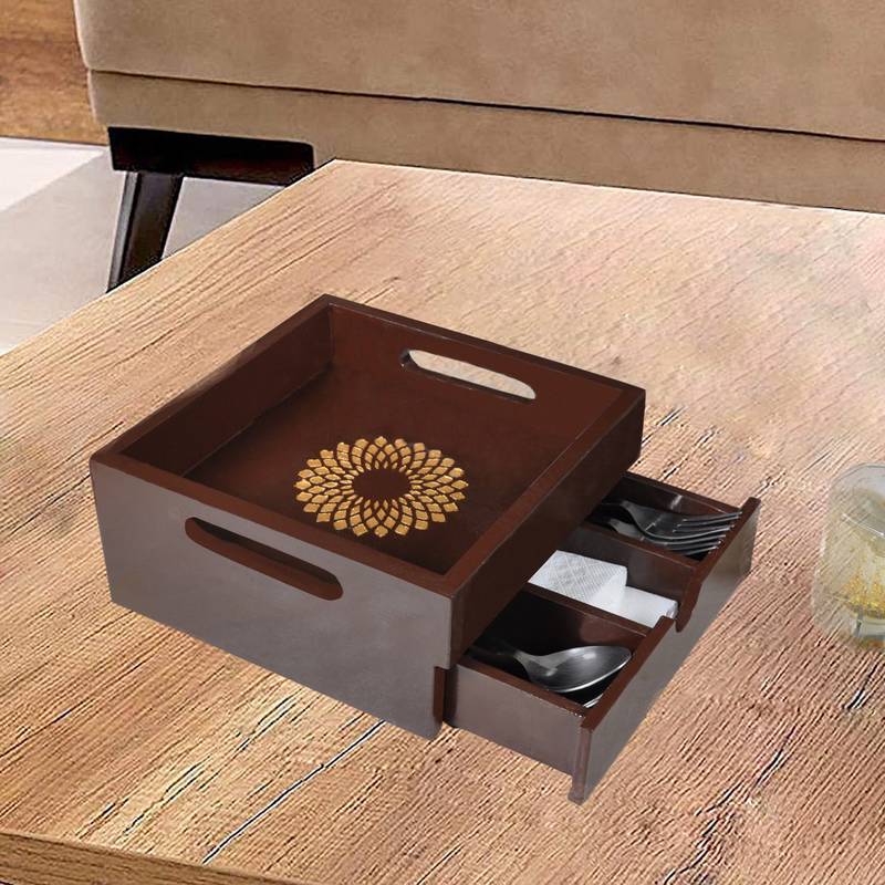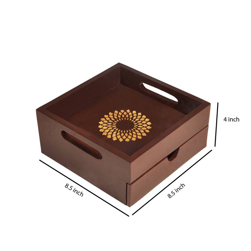 | Product Name | Wooden Hand Painted Home Office Table Decor Serving Wooden Decorative Tray With Drawer (8.5 X 8.5 X 4 Inches, Brown) | |