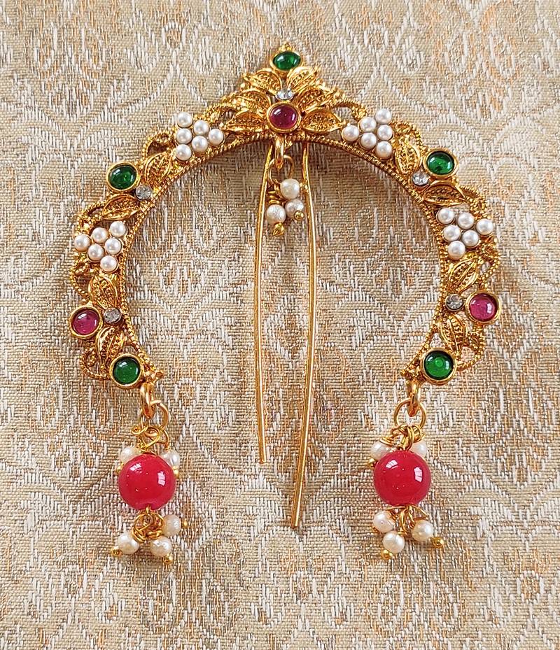 Lalso multicolour kempu pearl gold plated veni hair accessories jewelry