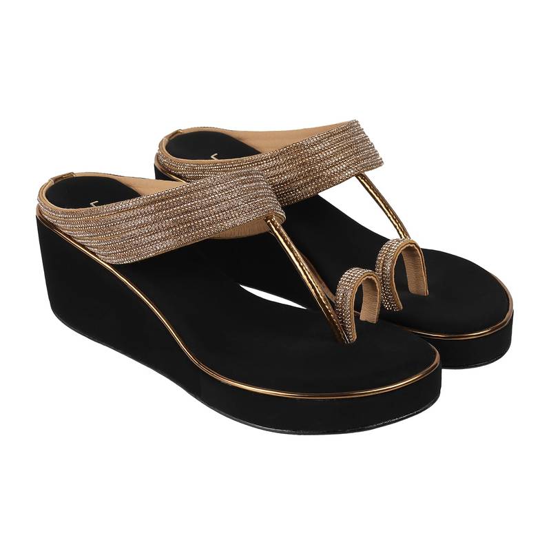 | Product Name | Antique Gold Embellished Wedge Sandals With Toe Ring Design (1614) | |