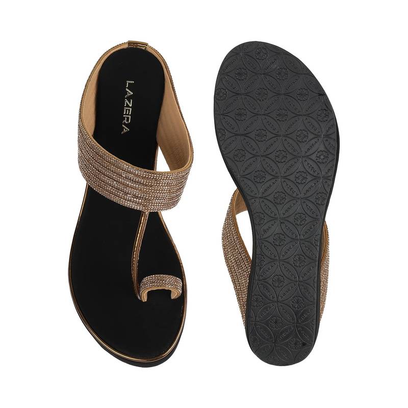 | Product Description | • Color: Antique Gold Shoe Size: Available In Multiple Sizes (36–41) Footwear Material: Synthetic Upper With Embellished Strap, Cushioned Lining, Pu Sole Age Group: Adult (18–45 Yrs) Care Instructions: Wipe With A Dry Cloth After Use; Store Away From Water And Direct Sunlight Closure Type: Slip On Flat Shoe Style: Not Applicable Heel Height Type: Mid Wedge (2–3 Inches Approx.) Heel Shoe Type: Wedge Heel Occasion Style: Partywear, Festive, Wedding, Casual Evening Sandal Style: Toe Ring Wedge Sandal Shoe Features: Embellished Strap, Cushioned Comfort Sole, Lightweight, Slip Resistant Outsole Shoe Fit: Regular Fit Slipper Style: Not Applicable Target Gender: Women Toe Style: Open Toe With Toe Ring Design Description: Shine At Every Occasion With These Lazera Antique Gold Wedge Sandals, Featuring A Chic Toe Ring Design And Shimmering Embellished Straps