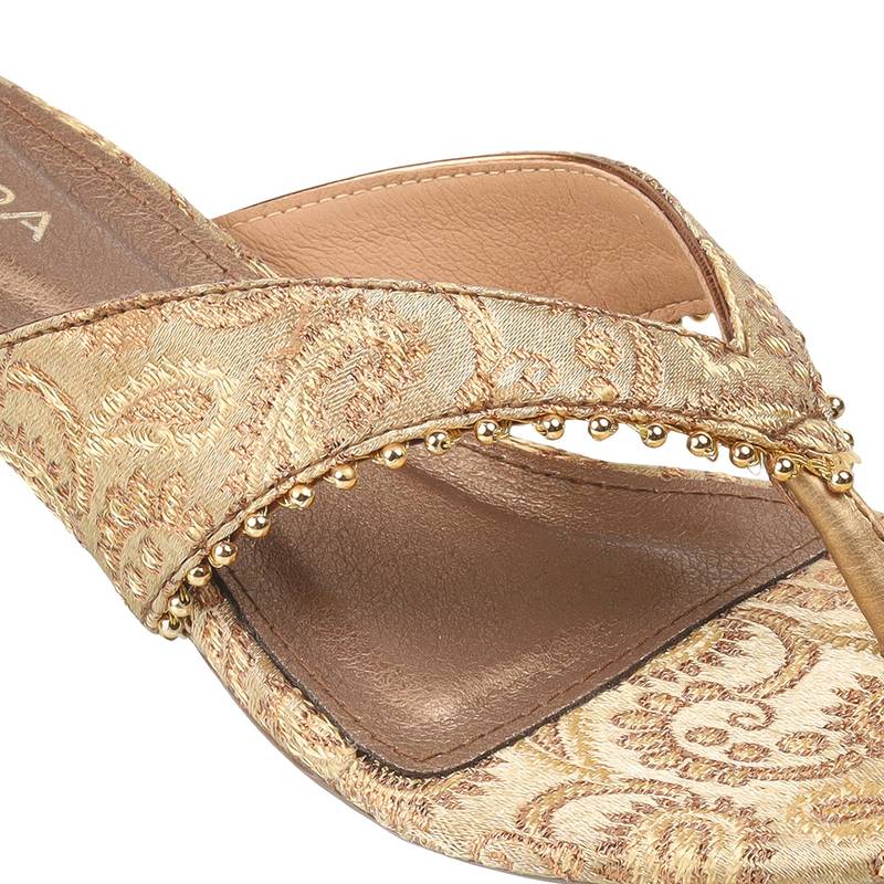 | Product Description | • Step Into Timeless Elegance With These Festive Brocade Heels Featuring An Intricate Woven Texture And Golden Bead Detailing