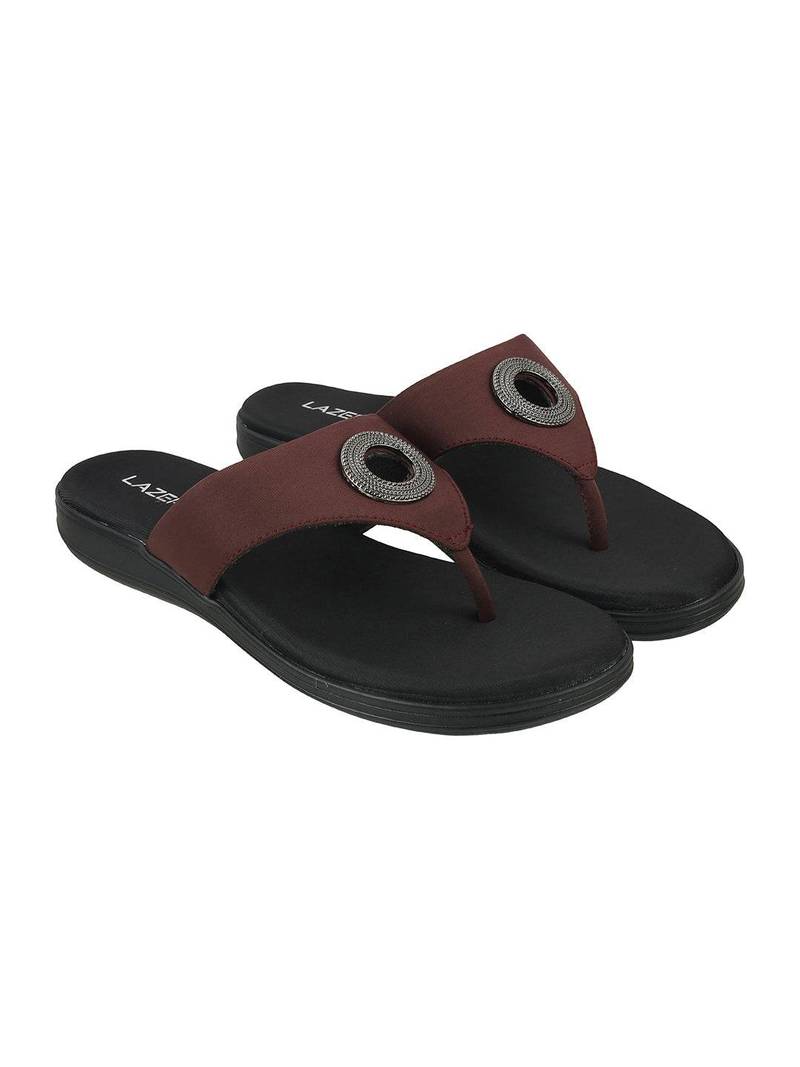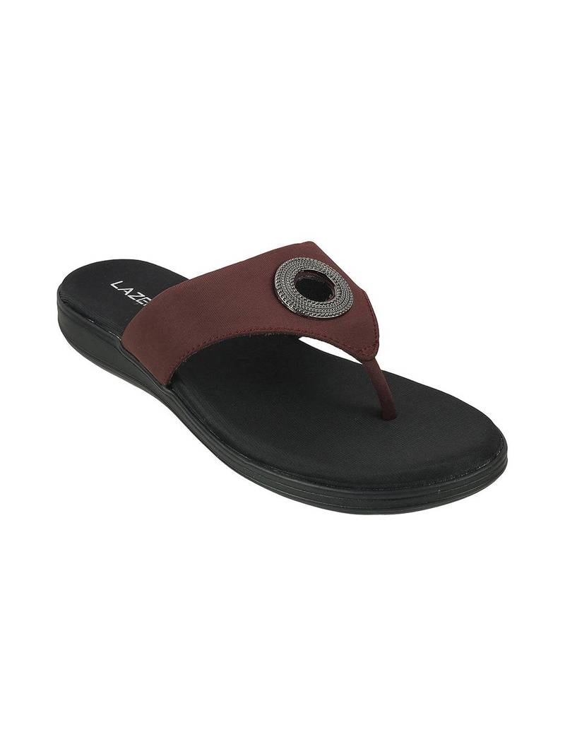 • Elevate Your Everyday Comfort With Lazera’s Brown Toe Ring Flats Featuring A Stylish Metallic Embellishment On The Strap