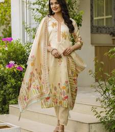 Product Name Women's Cream Viscose Silk Sequin & Stone Embroidered Kurta Pant Set With Printed Silk Dupatta