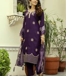 Women's wine viscose chanderi silk embroidered kurta pant set with jacquard organza dupatta