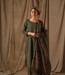 | Product Name | Bottle Green Printed Cotton Suit Set With Chevron Dupatta | |