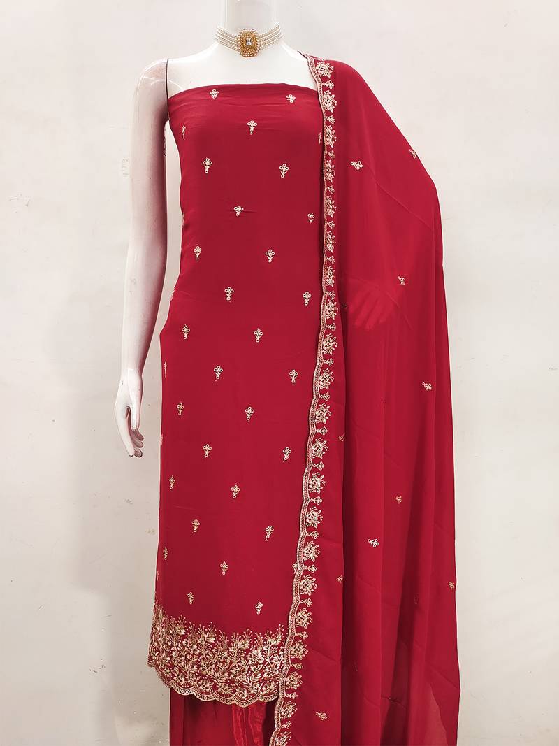 • | Kameez | : | Color- Red / Fabric- Georgette |