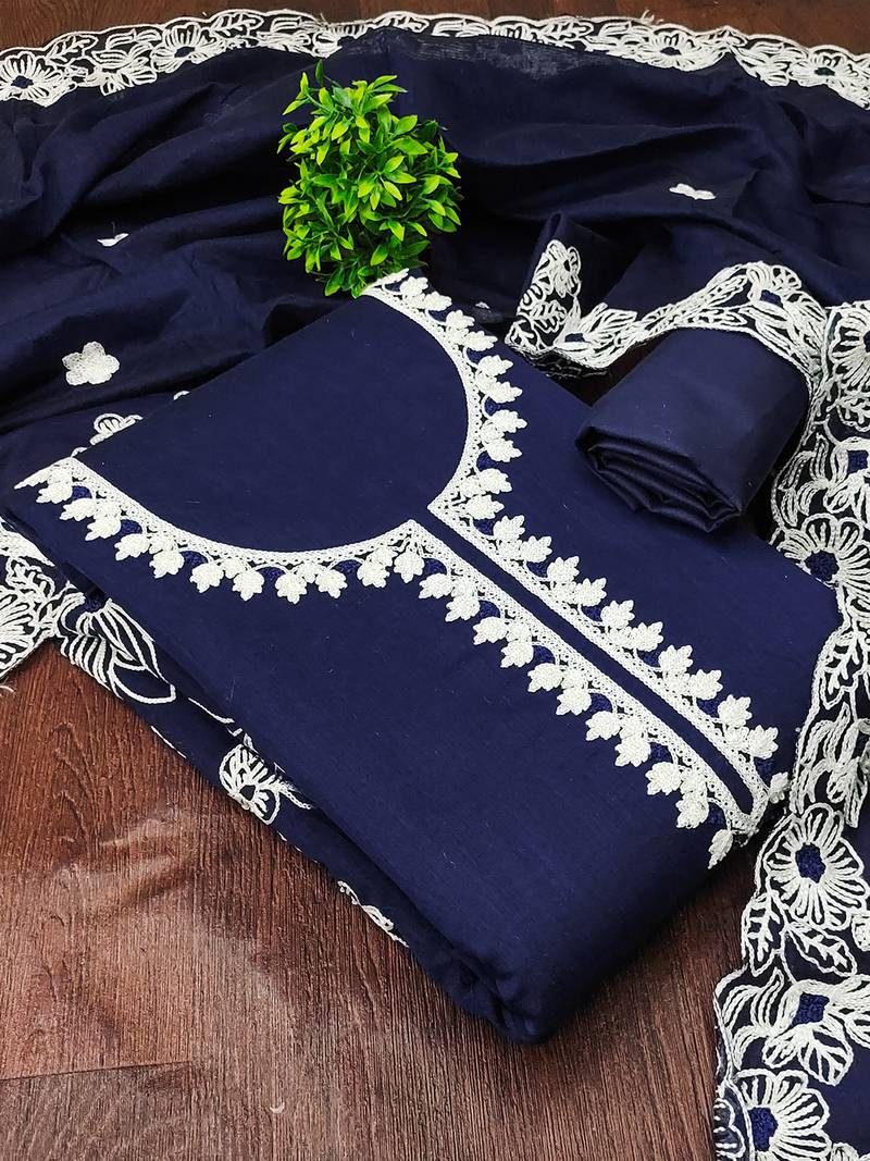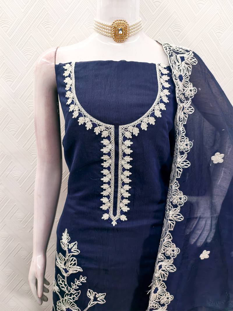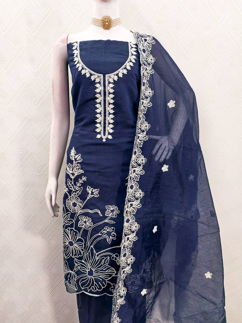 | Product Name | Navy Blue Chanderi Silk Salwar Suit Dress Material For Women | |