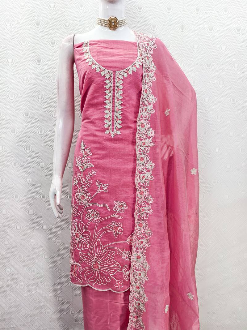 | Product Name | Pink Chanderi Silk Salwar Suit Dress Material For Women | |
