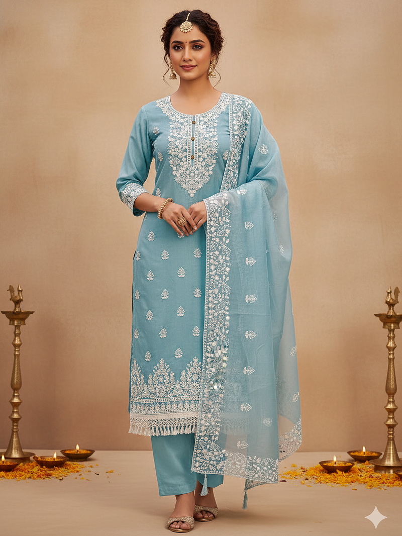 | Product Name | Women's Blue Chanderi Cotton White Embroidered Lucknowi Chikankari | |